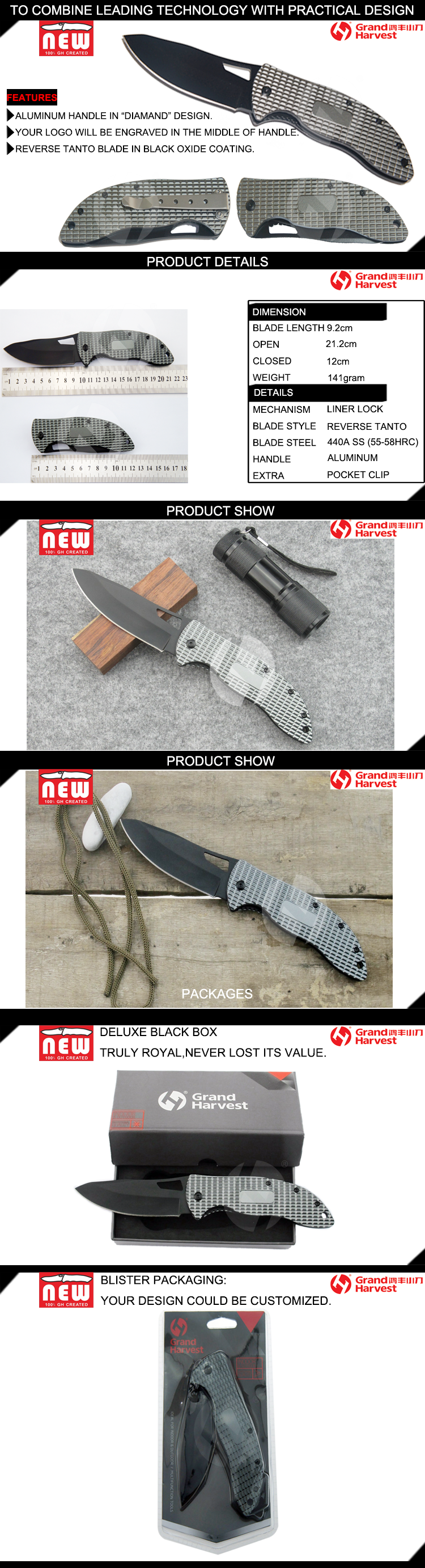 A: Mostly is stainless steel blade, handle is stainless steel or aluminum + plastic.