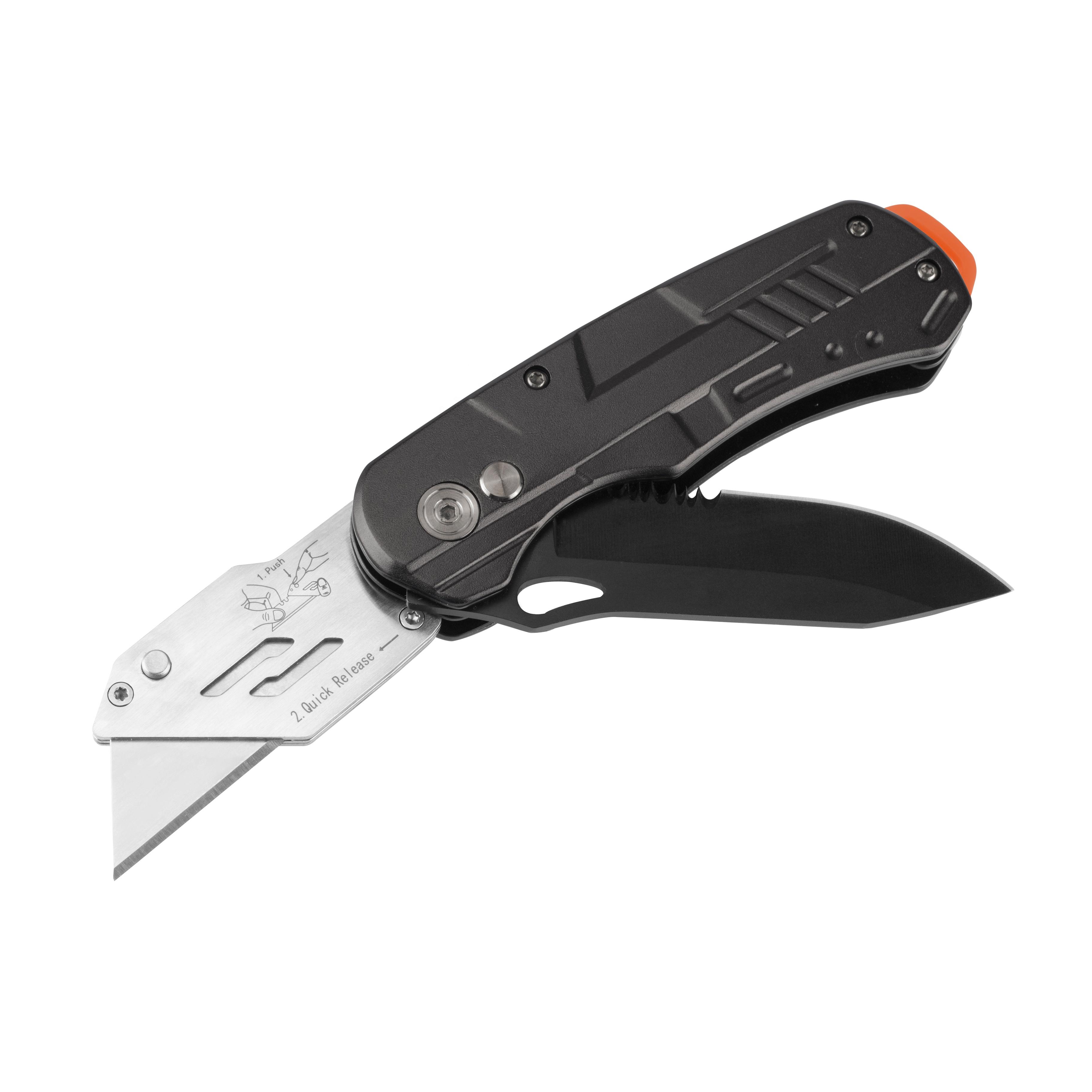 A: Mostly is stainless steel blade, handle is stainless steel or aluminum + plastic.